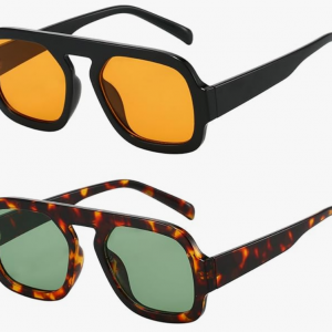 Trendy Square Aviator Sunglasses for Women Flat Top Designer Stylish Frame Sun Glasses Vintage Shades
