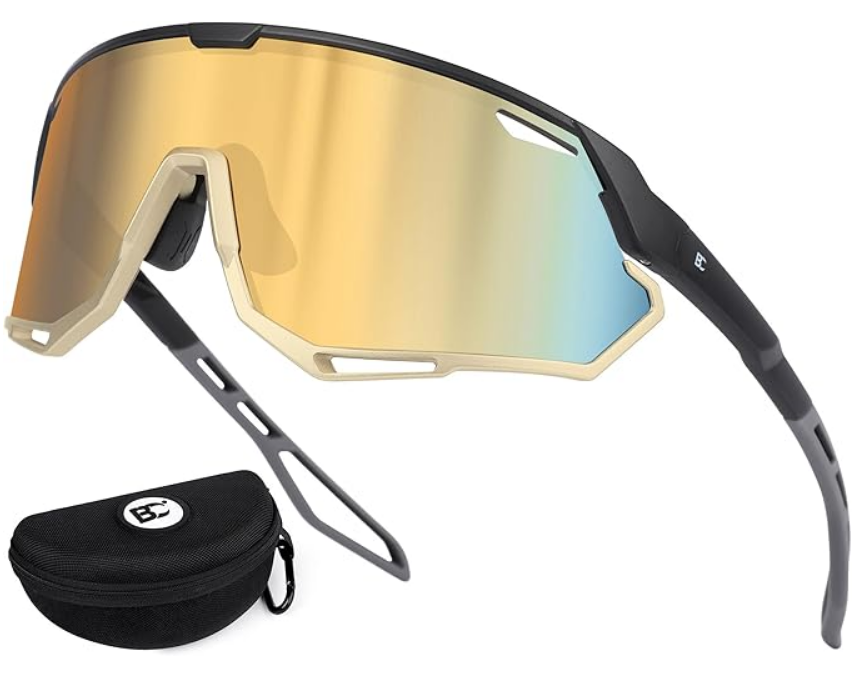 • 【Lightweight TR90 Frame】This running sunglasses for men is built with premium TR90 material, the frame is ultra-light yet highly durable, offering strong flexibility and impact resistance for long-hour wear. The wraparound design improves facial coverage and stability, keeping the running glasses firmly in place during fast rides, sprints, climbs, and sudden direction changes without squeezing your temples or sliding down.