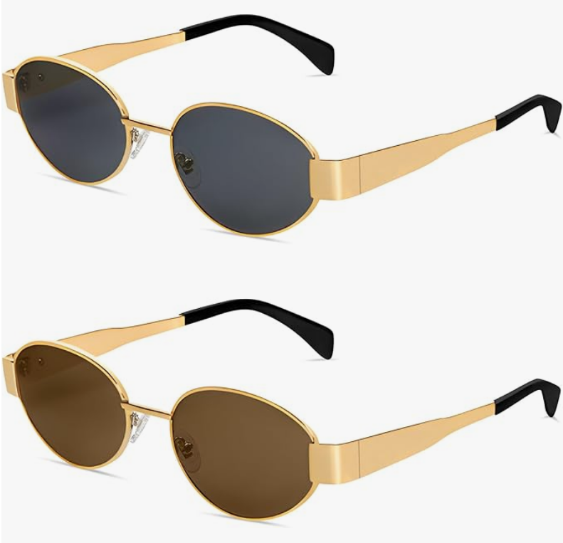 - [RETRO DESIGN] – The oval frame makes the sunglasses look more fashionable and retro, and the design of metal widened temples makes the sunglasses more solid and refined.